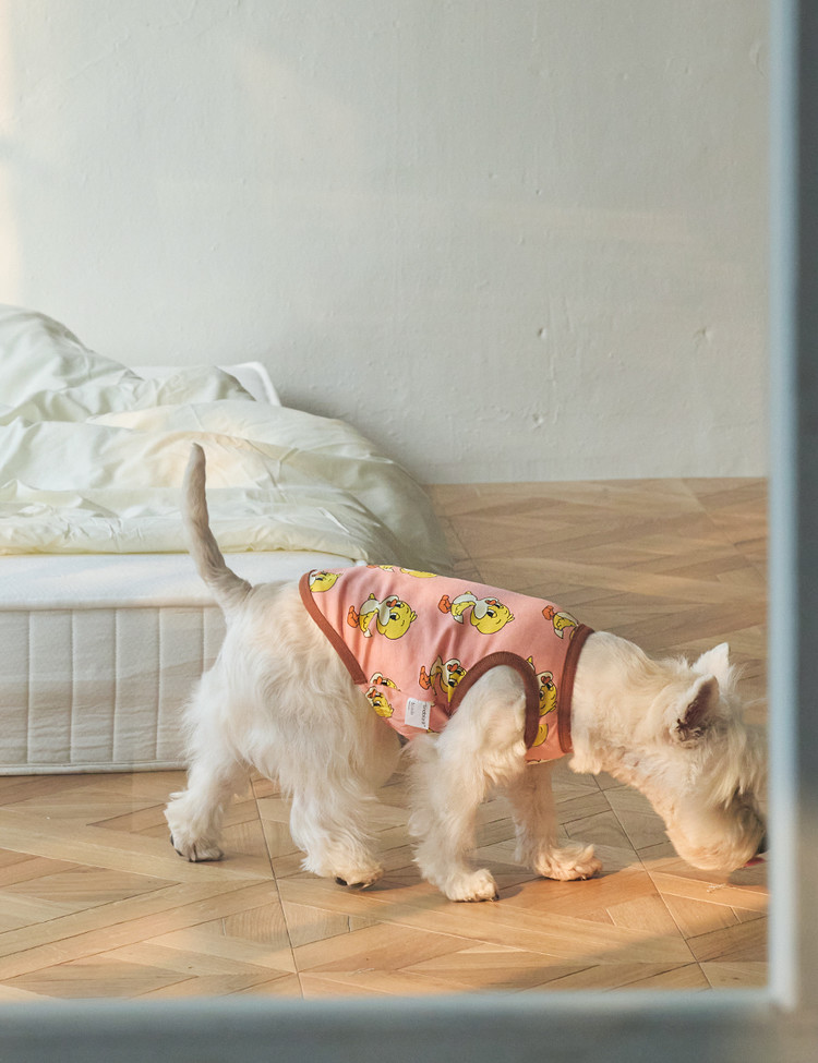 피코 그래픽이 돋보이는 피치 컬러의 아이코닉 민소매 티셔츠 입니다.